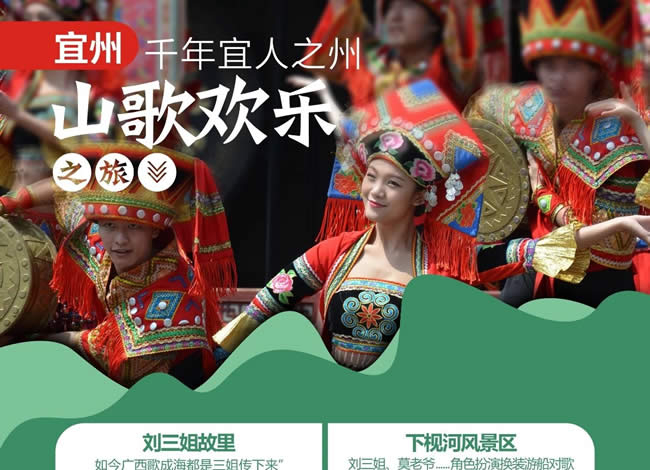 早餐后,乘車前往宜州國家AAAA級景區(qū)【劉三姐故里】景區(qū)包括龍江河、下枧河、流河寨、壯古佬、寨中保留有劉三姐故居、阿牛哥家、王媒婆家及劉三姐歌臺等,寨門有壯妹山歌迎賓,還有實景演出,是一個充滿民俗特色的旅游景區(qū)。下枧河是到達劉三姐故居的之地,兩岸青山綠水,河道中還有較多巖石,仿若“水上石林”。船 行其上時,還會時不時飄來山歌,非常有意思。到達流河寨,方可一探寨內的劉三 姐故居。在下枧河與龍江河的交匯處有一塊“望妹石” ,相傳劉三姐掉下山崖后,阿牛哥總是站在這里癡癡地望著,希望能看到劉三姐平安歸來,后人便把他站的這塊石 頭叫做“望妹石”。乘船穿梭在河中,劉三姐與阿牛哥劃著小舟,唱著山歌的情景便不禁浮現(xiàn)。宜州是著名壯族歌仙劉三姐的故鄉(xiāng)。