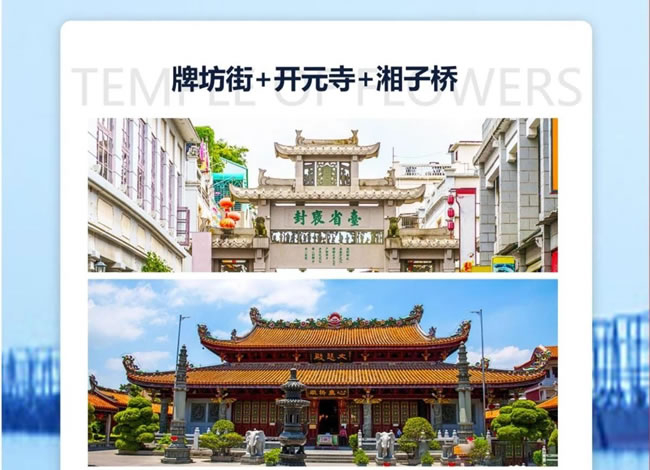 早餐后游覽【開元寺】(游覽時間不低于30分鐘)位于鯉城區(qū)西街,是中國東南沿海重要的文物古跡,也是福建省內(nèi)規(guī)模較大的佛教寺院。該寺始創(chuàng)于唐初垂拱二年(686年),初名蓮花道場,開元二十六年(738年)更名開元寺?,F(xiàn)存主要廟宇系明、清兩代修建,南北長260米,東西寬300米,占地面積78000平方米?!疚鹘帧浚ㄓ斡[時間不低于30分鐘)是泉州較早開發(fā)的街道和區(qū)域,早在宋朝,它就已經(jīng)象征了泉州的繁榮,它還是泉州市區(qū)保存較完整的古街區(qū),保留著大量具有歷史原貌的建筑。前往前往【蟳埔村】(游覽時間不低于60分鐘),蟳埔村位于福建省泉州市豐澤區(qū)東海社區(qū)的一條小漁村,這里居住的是古時阿拉伯人的后裔。這里的女人們頭上戴著鮮花做的漂亮的簪花圍,戴著丁香耳墜,穿著大裾衫、寬腳褲,形成了一道獨特的風情,她們和惠安女、湄州女一起并稱福建三大漁女,這里還有別具特色的民居“蚵殼厝”。體驗潯埔村地方民俗,風土人情?!九抠浰筒寤?,體驗潯埔漁村民俗】隨后前往平潭酒店入住休息。