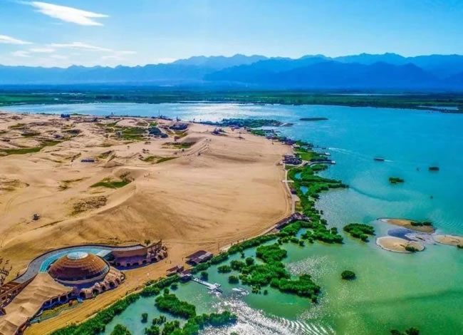 早餐后游覽國(guó)家 5A 級(jí)景區(qū)【沙湖旅游區(qū)】(含門票+大船,參觀約 2.5 小時(shí)),在這里,大漠金沙的豪放粗獷與碧湖葦蕩的恬靜秀美天然的融合在一起,構(gòu)成一派大漠水鄉(xiāng)的沙湖 奇觀,湖水、沙山、蘆葦、飛鳥、游魚、荷塘在毛烏素大漠之上,營(yíng)造出中國(guó)絕無僅有的勝地。