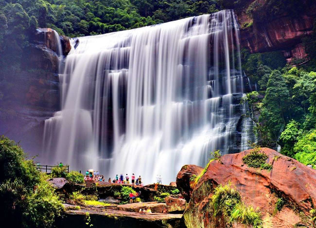 早餐后前往當(dāng)?shù)厣鐣唐妨闶燮髽I(yè)自由活動并領(lǐng)精美紀(jì)念品,名特產(chǎn)品(較為著名云上赤水泰和乳膠、逸可瑞斯乳膠等,主要銷售乳膠制品),自由活動后前往【赤水大瀑布】欣賞美譽中國的簾狀瀑布典型代表中洞瀑布。觀氣勢恢弘的赤水大瀑布(寬81米,高76米),是亞洲最大的瀑布,也是“世界丹霞第一瀑”,瀑水從懸崖絕壁傾瀉而下,猶如萬馬奔騰,聲如雷鳴,水霧彌漫,陽光下時見彩虹繽紛,在特定的觀景石上,奇妙的佛光環(huán)隨人移動,一人一環(huán),美不勝收。自由活動后乘車前往【白馬溪景區(qū)】(此景點為旅行社贈送景點,若時間緊湊無法前往請各位旅客諒解,贈送景點不予置換或退費),(白馬溪景區(qū)內(nèi)有玻璃橋、旱滑道等娛樂項目,客人可根據(jù)自身情況自愿選擇自己喜歡的項目參加,報價不含娛樂項目)赤水白馬溪景區(qū)是赤水唯一家主題景區(qū),景區(qū)集有赤水旅游的5大旅游元素;瀑布景觀、丹霞景觀、竹林景觀、石斛觀光、以及活化石桫欏樹。景區(qū)原生植被繁茂,景色怡人,環(huán)境絕佳。是旅游觀光的絕佳勝地,晚餐可自費品嘗(苗家風(fēng)情晚會120元/人),同時觀賞苗家印象激情互動篝火晚會,或自由活動。酒店休息。