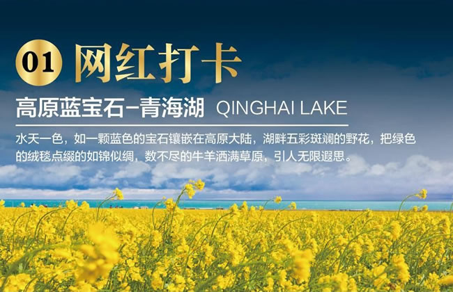 早餐后乘車前往【茶卡鹽湖】(含門票,不含小火車,游覽不低于3小時(shí))茶卡鹽湖,中國(guó)的天空之鏡。風(fēng)光旖旎,景色優(yōu)美。當(dāng)你踏入茶卡鹽湖的那一刻,就仿佛進(jìn)入了一個(gè)夢(mèng)幻般的世界。只見湖面平靜如鏡,將天空、云朵、山巒、樹木倒映其中,形成了一幅獨(dú)特的水天相接的畫面。這里的鹽層晶瑩剔透,泛著白光,宛如一面巨大的鏡子,將周圍的一切都映照得清晰可見。漫步湖面如行走在云端之上。茶卡鹽湖是古絲綢之路的重要站點(diǎn),歷史上是商賈、游客進(jìn)疆入藏的必經(jīng)之地。湖面上,時(shí)而碧波蕩漾,時(shí)而有莽莽蒼蒼,集秀麗、壯美于一體,在那里時(shí)仿佛靜止般,天地間是一片純凈的白與藍(lán),就像做了一場(chǎng)幻境的夢(mèng)…這里被國(guó)家旅游地理雜志評(píng)為“人一生必去的55個(gè)地方之一”。贈(zèng)送參觀青海高原藏寨(免費(fèi)景點(diǎn),游覽時(shí)間不低于1小時(shí))村寨內(nèi)外到處都是飄揚(yáng)的經(jīng)幡,領(lǐng)略藏族的風(fēng)土人情,體會(huì)藏族文化的魅力。此為贈(zèng)送項(xiàng)目,若因客觀原因(例如關(guān)閉修整、時(shí)間、天氣、道路擁堵等因素)造成無法參觀的,則不退任何費(fèi)用。參觀中國(guó)最美的五大湖泊之首高原明珠—【青海湖二郎劍】(含門票,不含電瓶車,不含游船,游覽不低于2小時(shí))青海湖是我國(guó)第一大內(nèi)陸湖泊,也是我國(guó)最大的咸水湖。湖面純凈深湛、溫柔恬雅的湖水,滿載著古老而優(yōu)美的傳說,夾帶著文成公主的相思,是如此的波瀾壯闊、恢宏磅礴,漫步清海湖畔,擁一抹晨曦在心,握一縷格?;ǖ拿髌G于手,不思前塵,不念過往,心中,只存世事通透的安然......在這里你可以欣賞的水天均呈現(xiàn)青藍(lán)一色,藍(lán)天白云映襯在湖中,水波蕩漾,海風(fēng)拂面,站在湖邊拍照,以天、湖、海岸為背影,沉醉高原的藍(lán)寶石,感受歲月如水時(shí)光靜好。從廣場(chǎng)走到湖邊處,青海湖就在眼前,沿湖邊木制棧道觀湖散步,有幸可看到湖面上的海鷗在天空翱翔。青海湖的美用再多的語言都是無法形容的,左邊蔚藍(lán)的湖水,遠(yuǎn)處茫茫草原,牛羊成群,徜徉其中,視野開闊,景色優(yōu)美,給您一種心靈的釋放與洗滌。晚住青海湖沿線或西寧。